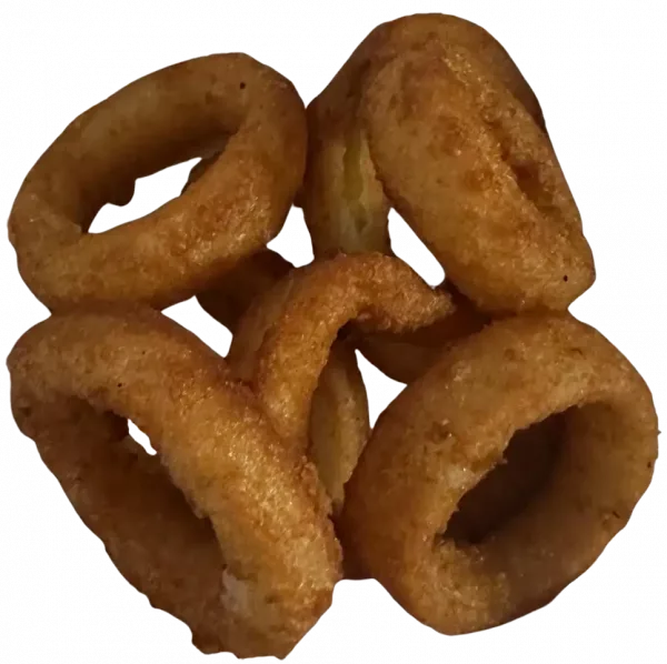 Entdecken Sie unsere köstlichen Onion Rings – 8 Stück knuspriger Genuss, die perfekt als Snack oder Beilage geeignet sind!