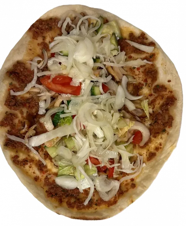Lassen Sie sich von unserem Lahmacun Döner in die faszinierende und vielfältige Welt der türkischen Küche entführen. Diese köstliche Pizza, die in ihrer Zubereitung mit viel Liebe und Hingabe hergestellt wird, ist großzügig belegt mit saftigem Döner-Fleisch von höchster Qualität, cremigem Tzatziki, das die Aromen perfekt harmoniert, und frischem, knackigem Salat, der für einen zusätzlichen Frischekick sorgt. Der knusprige Teig, der in einem traditionellen Holzofen gebacken wird, sowie die sorgfältig ausgewählten aromatischen Gewürze machen dieses Gericht zu einem authentischen Geschmackserlebnis, das Ihre Geschmacksknospen begeistern wird. Tauchen Sie ein in eine kulinarische Reise und genießen Sie die perfekte Kombination aus Tradition und modernem Geschmack, die Sie immer wieder zurückkommen lässt, um diesen Genuss aufs Neue zu erleben.