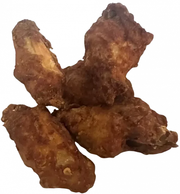 Genießen Sie unsere Crispy Chik’n Wings Gourmet Style – eine köstliche Auswahl, die aus sechs knusprigen Hähnchenflügeln besteht, die perfekt gewürzt und goldbraun frittiert sind.