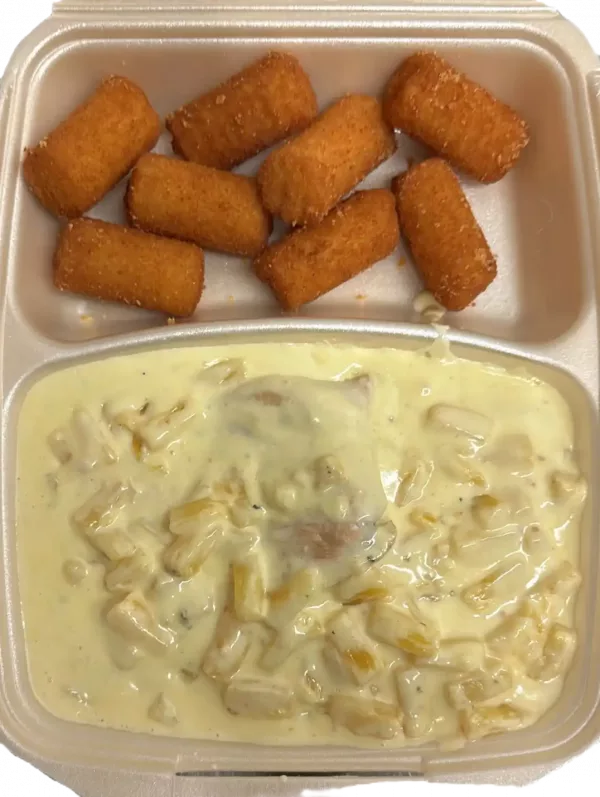 Genießen Sie unser köstliches Hähnchen Hawaii – zarte und saftige Hähnchenbrustfilets, die liebevoll in einer besonders leckeren und aromatischen Ananas-Sauce Hollandaise serviert werden. Diese exquisite Kombination verleiht dem Gericht eine tropische Note, die einfach unwiderstehlich ist. Dazu servieren wir knusprige, goldbraun frittierte Pommes Frites oder alternativ cremige und perfekt gewürzte Kroketten. Jeder Bissen verspricht ein tropisch-delikater Genuss, der Sie sofort in den erholsamen Urlaubsmodus versetzt und den Alltag für einen Augenblick vergessen lässt. Lassen Sie sich von dieser einzigartigen Geschmackserfahrung verführen!