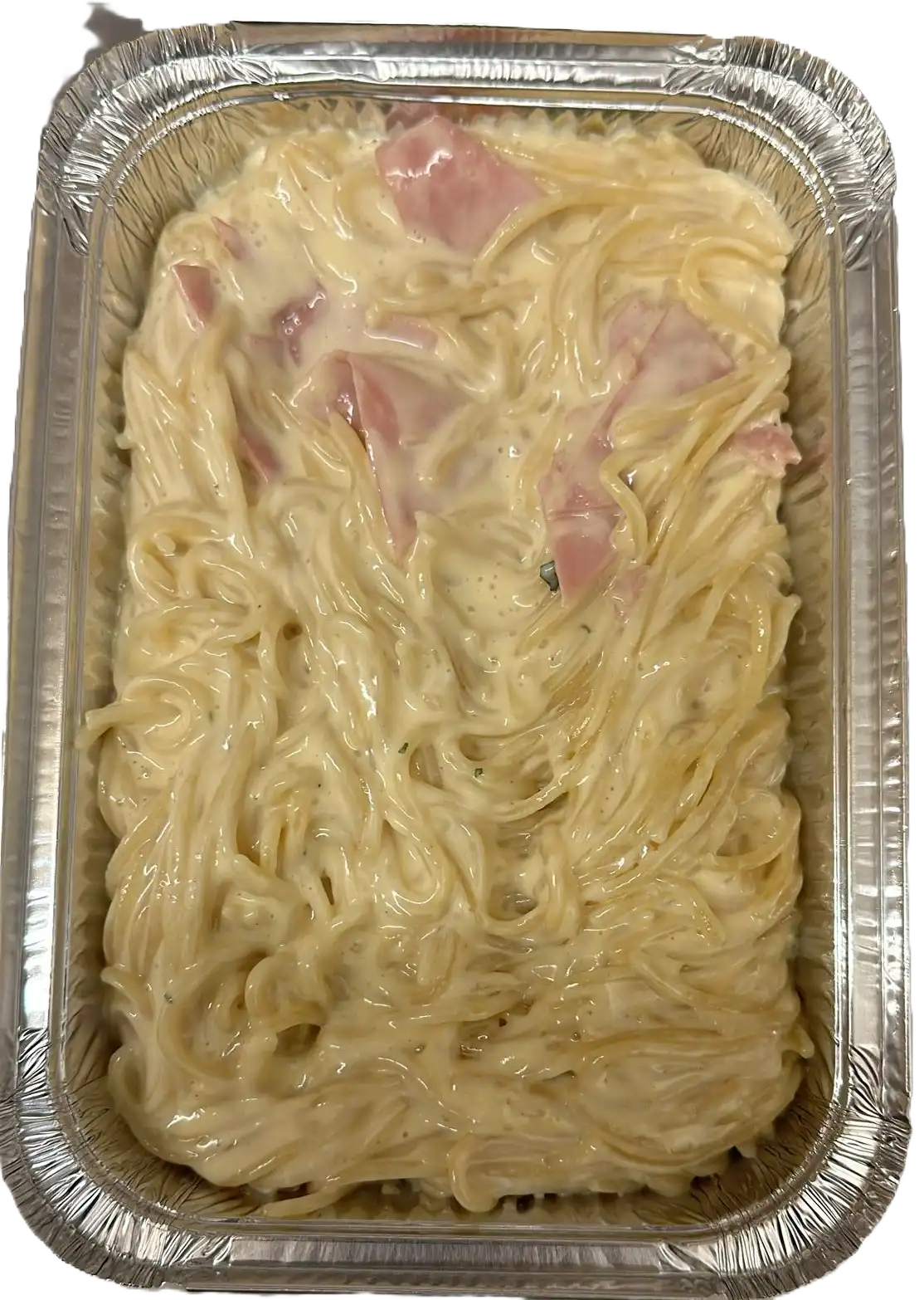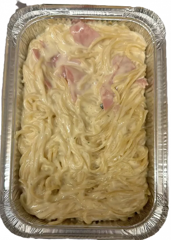 Spaghetti Carbonara mit Schinken, Eigelb und Sahnesauce enthält: 1, 2, 3, A, C, G
