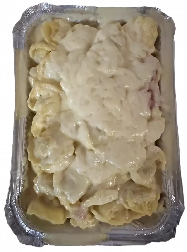 Erleben Sie die exquisite Geschmacksexplosion unserer köstlichen Tortellini, die liebevoll zubereitet werden und mit einer reichhaltigen, cremigen Sahnesauce sowie würzigem, zartem Schinken verfeinert sind. Diese delikaten, zarten Nudeltaschen werden mit großer Sorgfalt von Hand gefüllt und verleihen dem Gericht nicht nur einen unvergleichlichen Geschmack, sondern auch eine wunderbare, schmelzende Textur, die auf der Zunge zergeht.