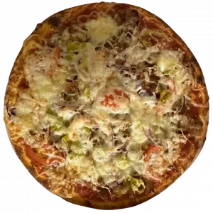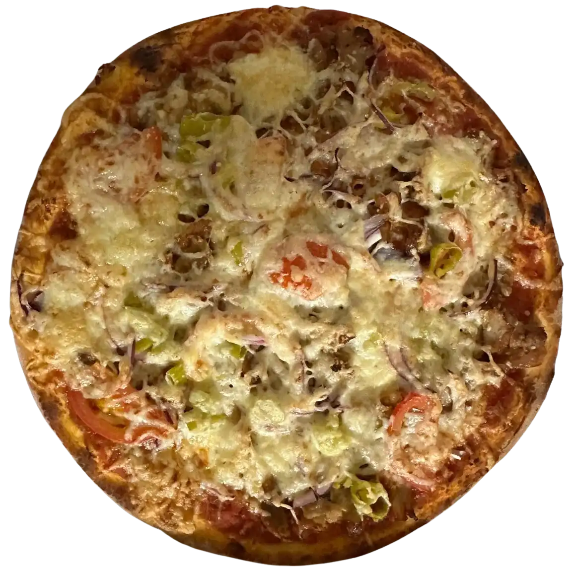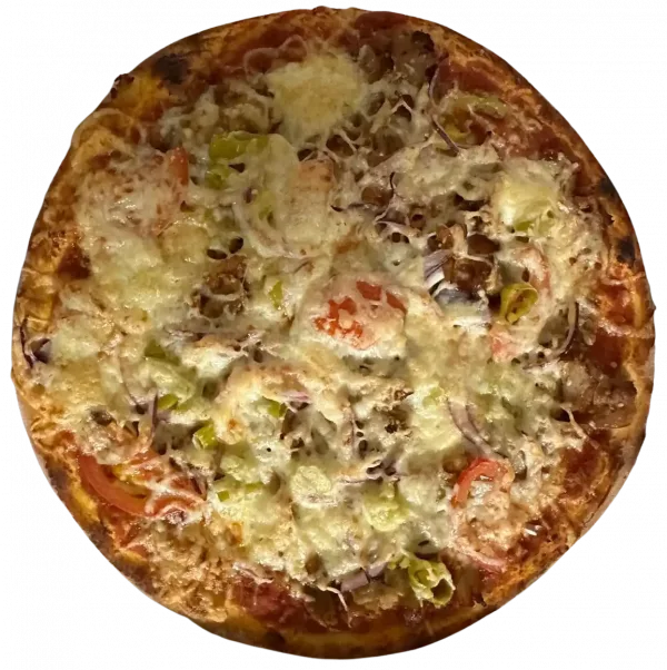 Unsere Pizza Döner mit Döner, Zwiebeln, Tomaten und Peperoni ist nicht nur eine gewöhnliche Pizza, sondern eine wahre Geschmacksexplosion, die Ihre Sinne verführt und Ihnen das Wasser im Munde zusammenlaufen lässt. Der saftige Döner-Fleischbelag, der aus hochwertigem, mariniertem Fleisch besteht und mit verschiedenen Gewürzen verfeinert wird, kombiniert mit frischen, knackigen Zwiebeln, reifen, saftigen Tomaten und würzigen, gefüllten Peperoni, ergibt eine köstliche Symbiose an Aromen, die jeder Gourmet zu schätzen weiß. Der knusprige Pizzateig, der mit Liebe zubereitet wurde, bildet die perfekte Basis für dieses einzigartige Geschmackserlebnis, das Sie zum Träumen bringt. Jeder einzelne Bissen ist ein Genuss voller Mittelmeerfeeling, der Sie direkt auf eine sonnige italienische Piazza entführt. Diese Pizza ist ein absolutes Muss für alle Liebhaber von Döner und Pizza, die sich von neuen Geschmackskombinationen überraschen lassen möchten und bereit sind, in eine Welt voller unvergleichlicher Aromen einzutauchen.