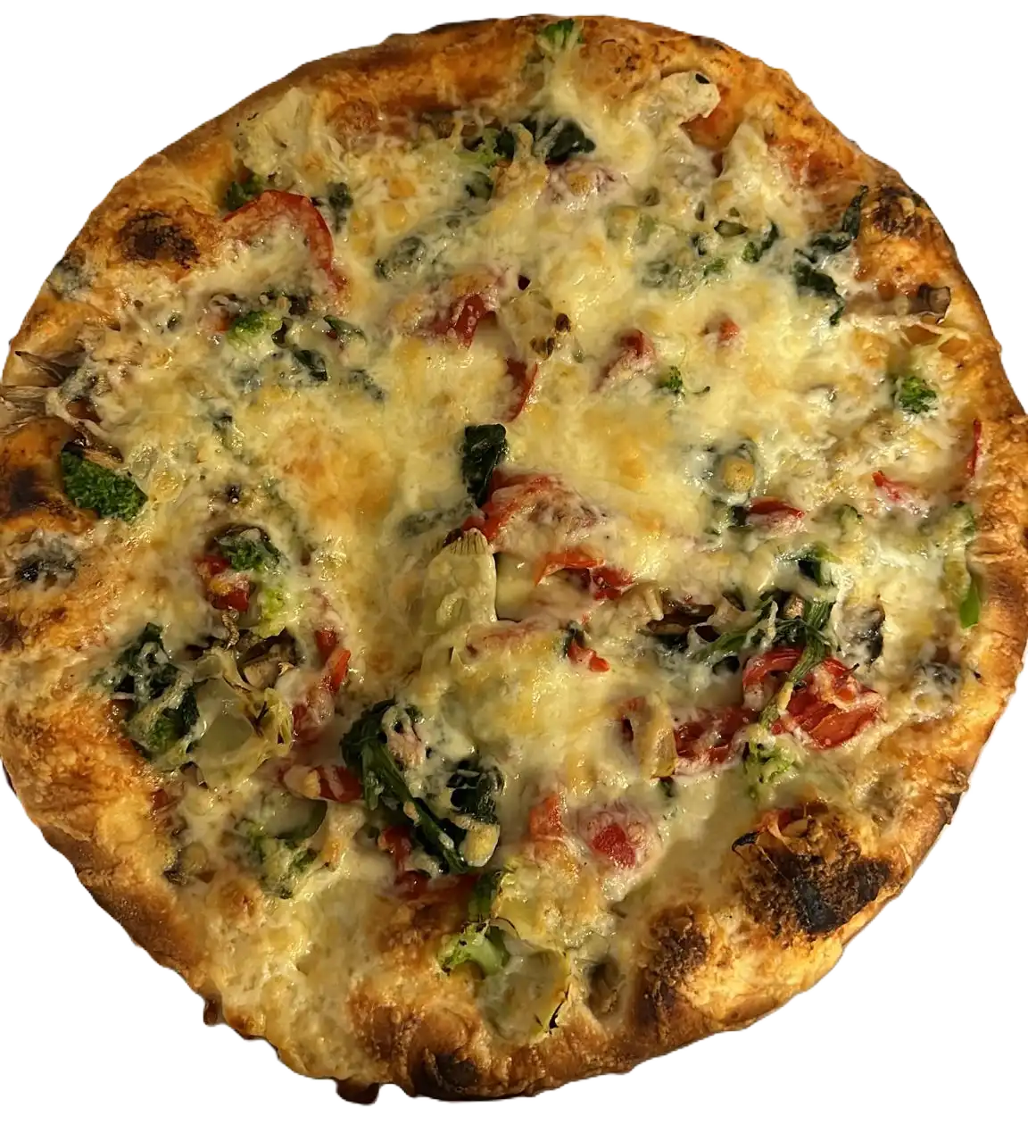 Pizza Vegetare mit Paprika, Broccoli, frischen Champignons, Artischocken und Spinat enthält: 1, A, C, G