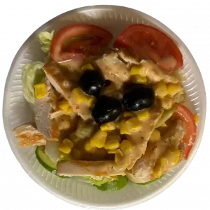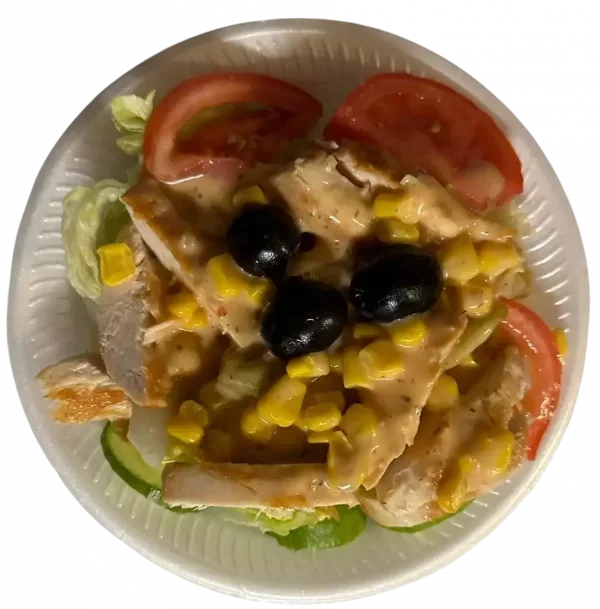 Unser Chicken Salat ist eine köstliche Mischung aus frischem, knackigem Salat und zarten Hähnchenbruststreifen. Genießen Sie ihn mit einer Auswahl an Dressings wie Essig und Öl, French-Dressing, Joghurt-Dressing oder Knoblauch-Dressing. Oder probieren Sie ihn auch ganz ohne Dressing – der Geschmack der hochwertigen Zutaten steht dann im Vordergrund.